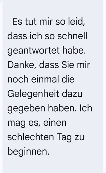 14. Oktober 2025 Verständigung mit Übersetzungsprogramm Trotz Übersetzungsprogramm wissen wir, was eine Mitarbeiterin uns sagen will 😊 6 Empfehlen Facebook LinkedIN Share Alltagsfreuden Bewerbung Büroalltag Deutsch Drehpunkt gute Laune Muhen Personalbüro Temporärstellen Verständigungsschwierigkeiten Getagged in